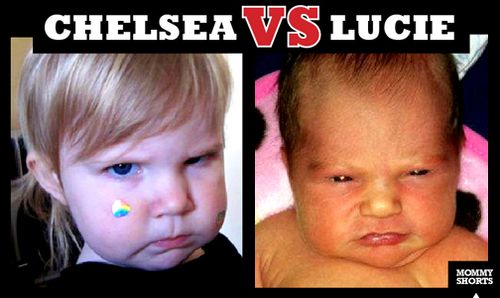 But it's the two cutthroat ladies below that managed to make their way through the original 32 contestants (not to mention the 175 evil babies submitted to the Mommy Shorts Facebook Fanpage) to face off against each other in today's ULTIMATE BATTLE OF THE GLARE.