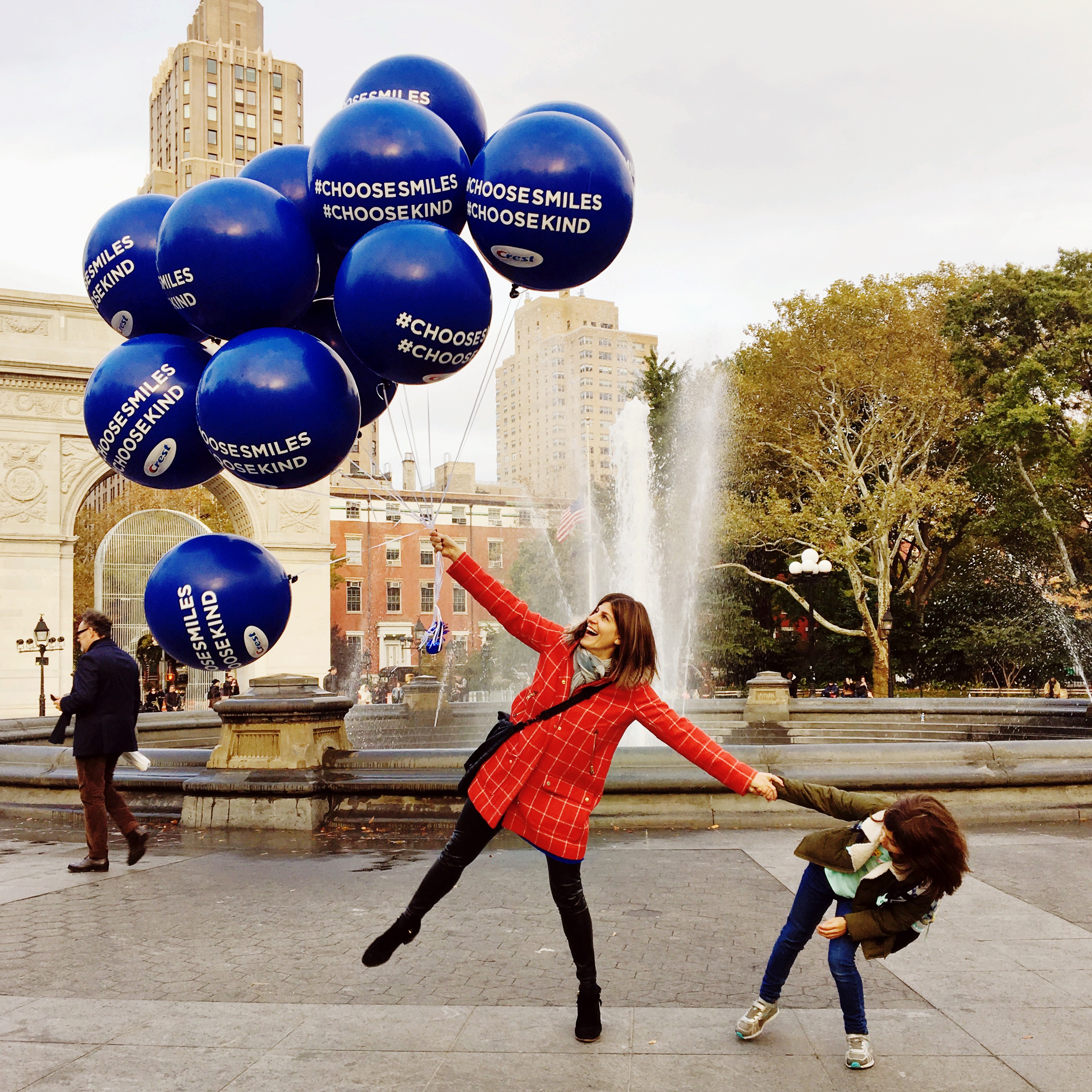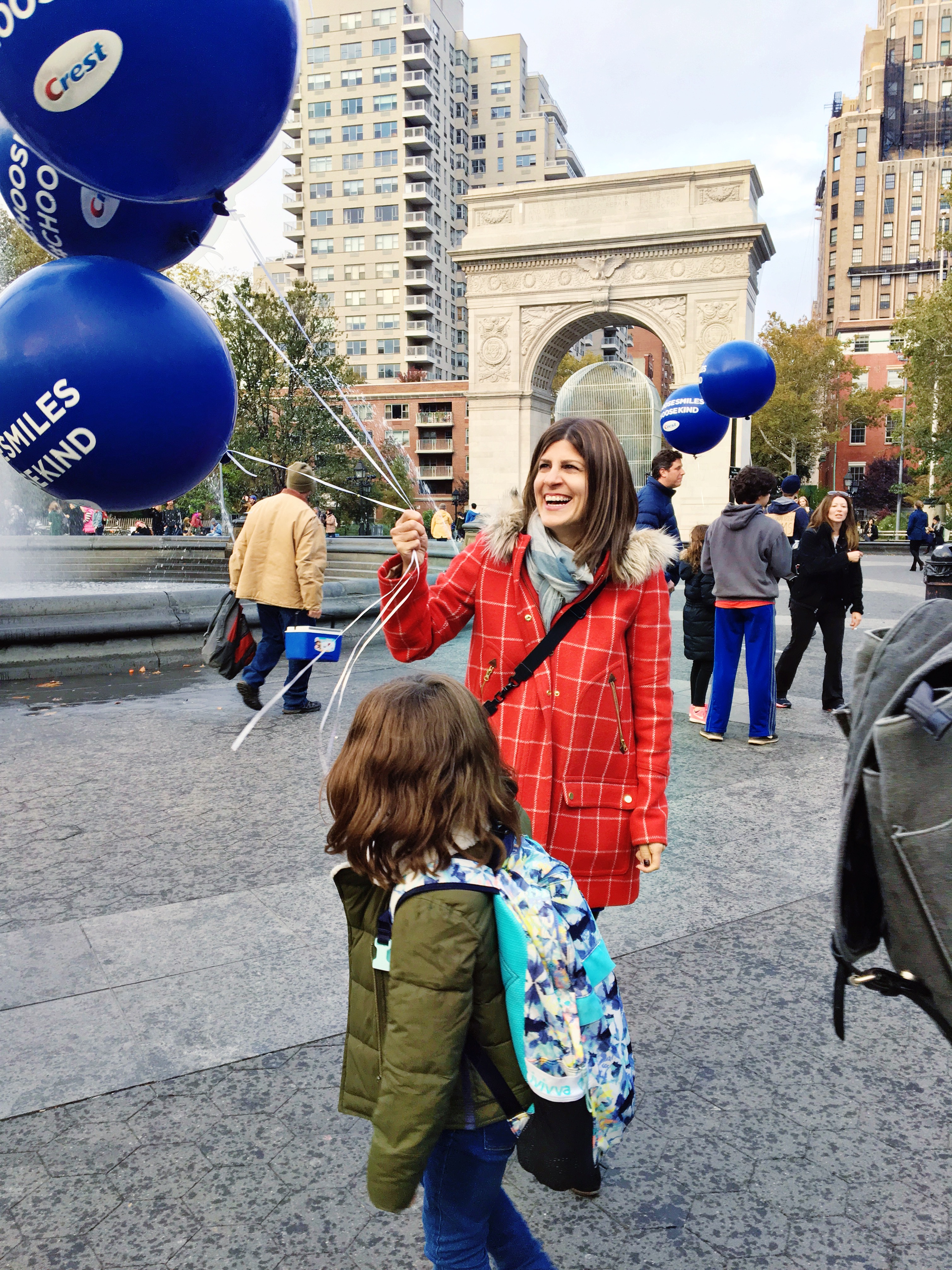 Today is World Kindness Day, which given the current state of the world, seems especially important. To celebrate, Mazzy and I made a special trip to Washington Square Park, armed with a huge bunch of blue balloons, to give people a smile in partnership with Crest. I can’t even put into words the look on Mazzy’s face when she saw the balloons in the distance walking toward us.