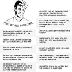 Have you heard about "First World Problems"? It's a popular internet meme by a blog called The Badger Hut that looks like